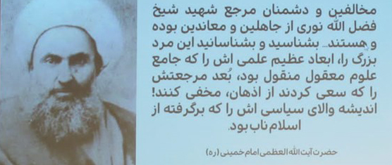 امام (ره) درباره شیخ می فرمایند:” جرم شیخ فضل الله بیچاره چه بود؟ جرم شیخ فضل الله این بود که قانون باید اسلامی باشد.